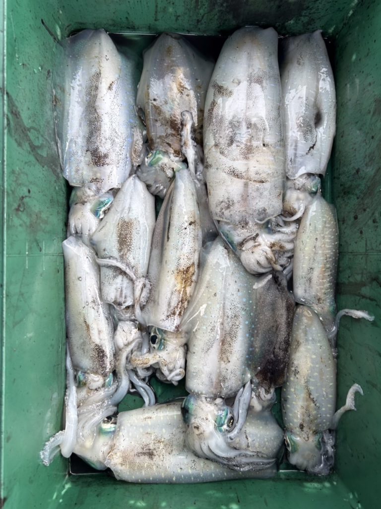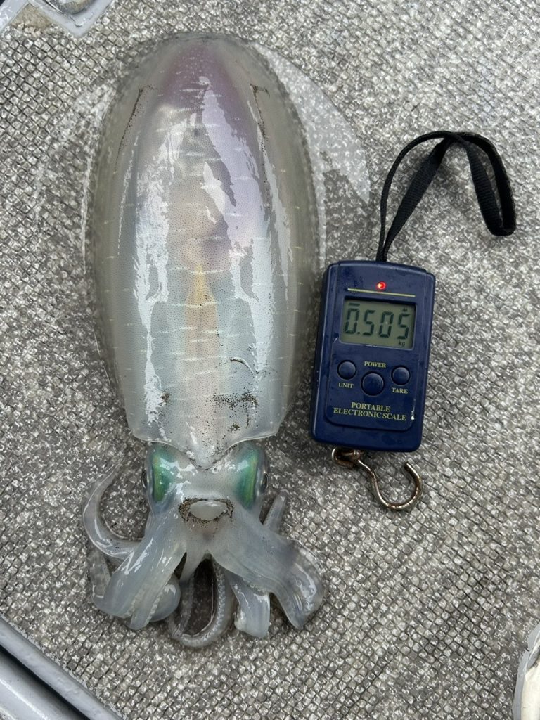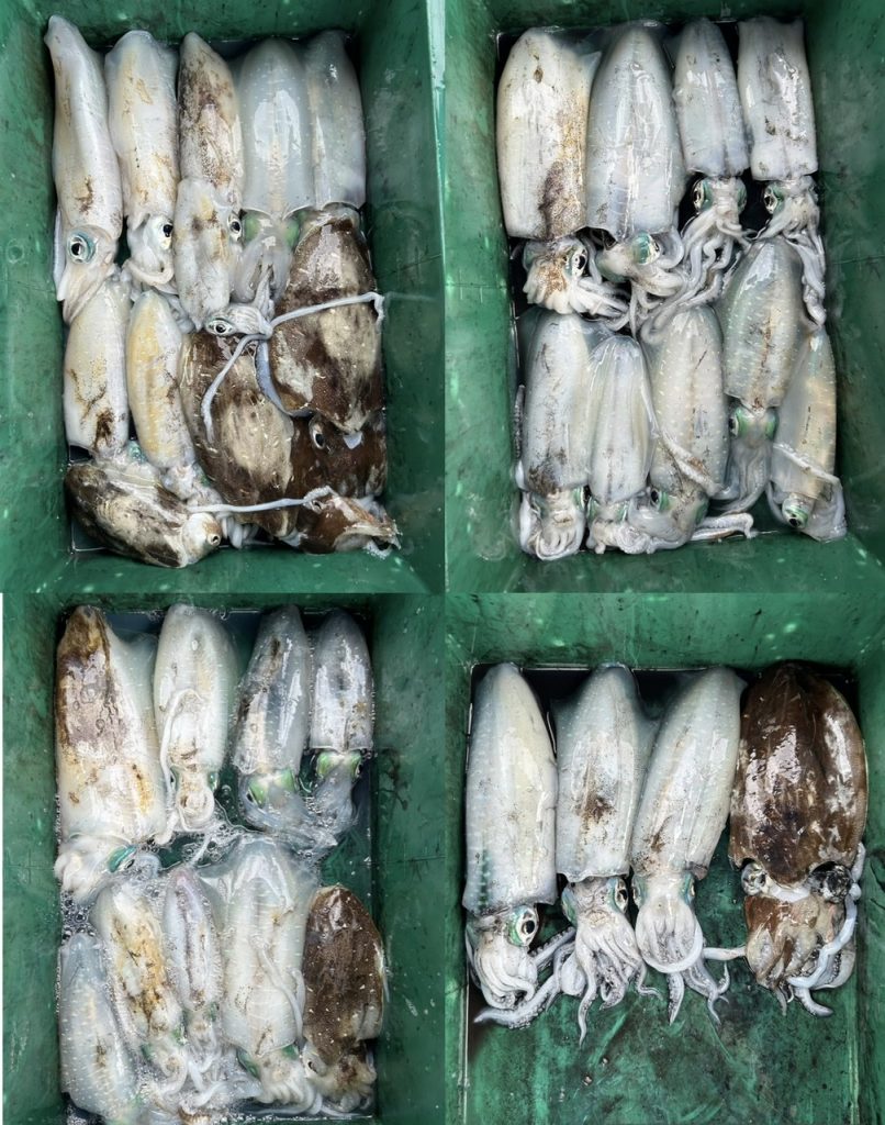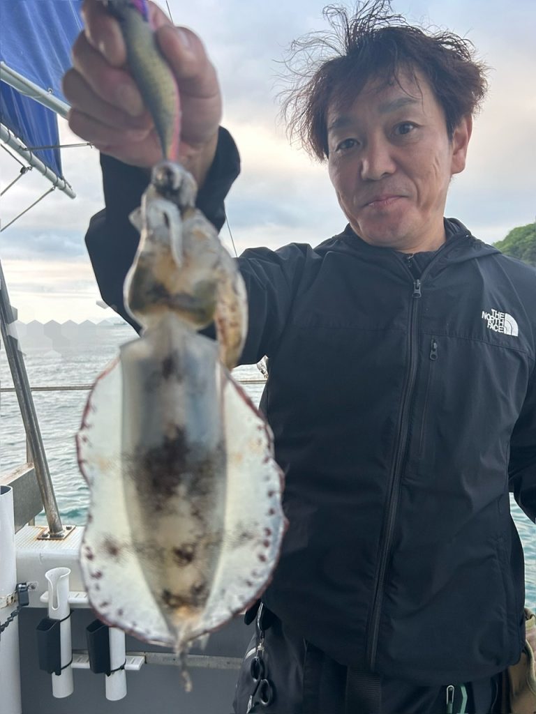 今日は中々の爆風でしたが皆さん頑張って頂きトップ13杯、11杯、9杯、9杯と船中45杯(コウイカ含む)でした。