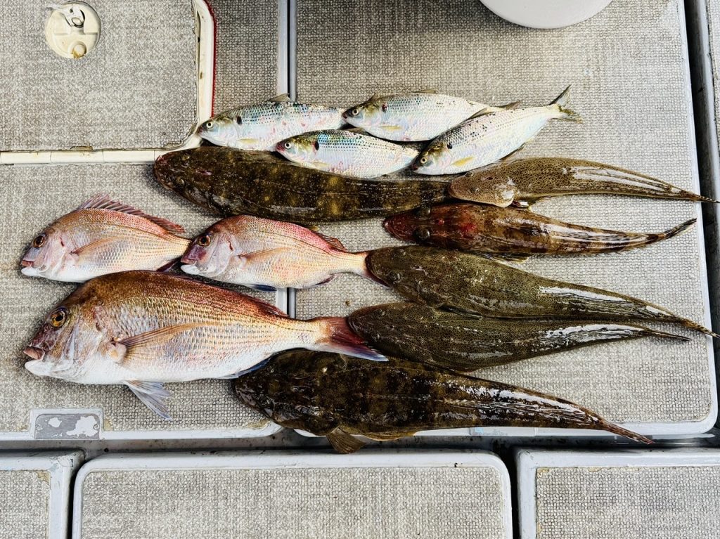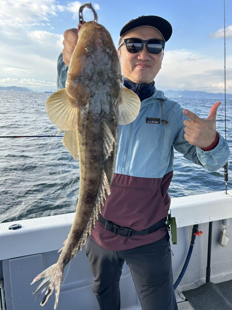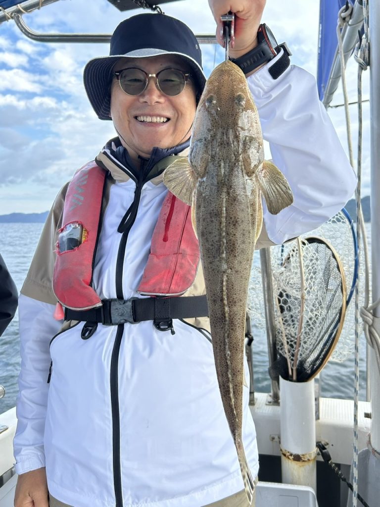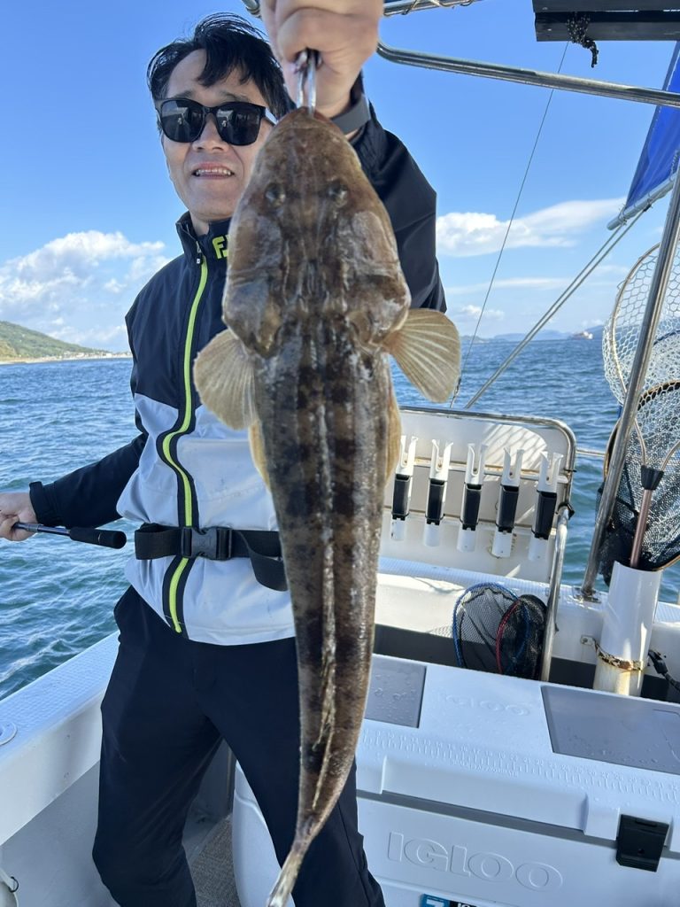 出船すると沖は結構風がありましたが皆さんに頑張って頂きポロポロと釣れますが大型マゴチが