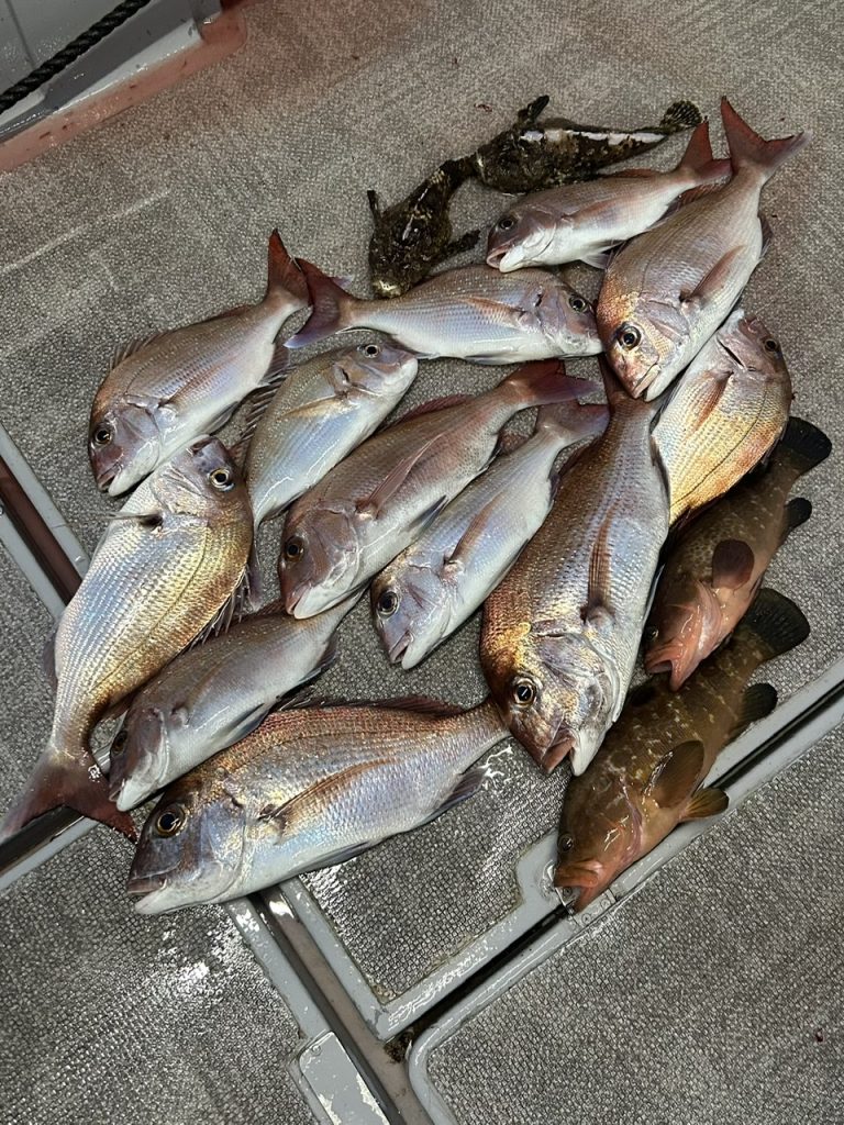 込みの潮は当たらず引の潮に変わってからトリプルヒットから始まり鯛にアコウにオコゼなど