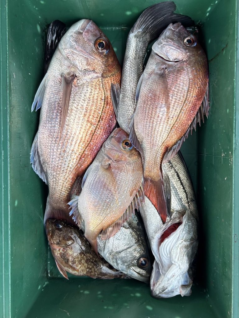 朝の潮変わりの時合に鯛をポツポツと釣れてその後はサッパリ